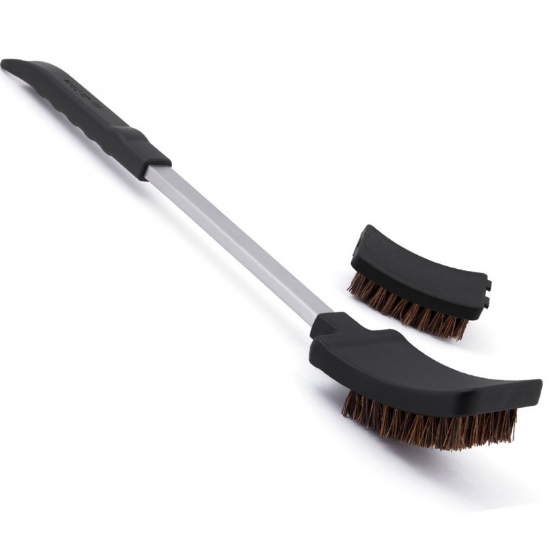Описание Полностью натуральная щетина пальмиры обеспечивает жесткую и безопасную очищистку. Все выпавшие щетинки сгорают на горячем гриле. Щетка подходит для использования на гриле при температуре ниже 450ºF / 232ºC. В комплекте две сменные головки.