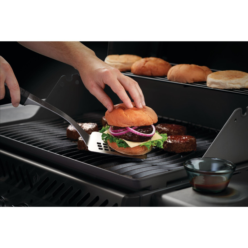- Большая многофункциональная лопатка идеально подходит для обработки крупных продуктов или переворачивания бургеров. Эта лопатка имеет крепкую эргономичную ручку, зубчатое лезвие и заостренный кончик, что позволяет легко поднимать продукты или резать их во время приготовления.