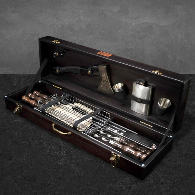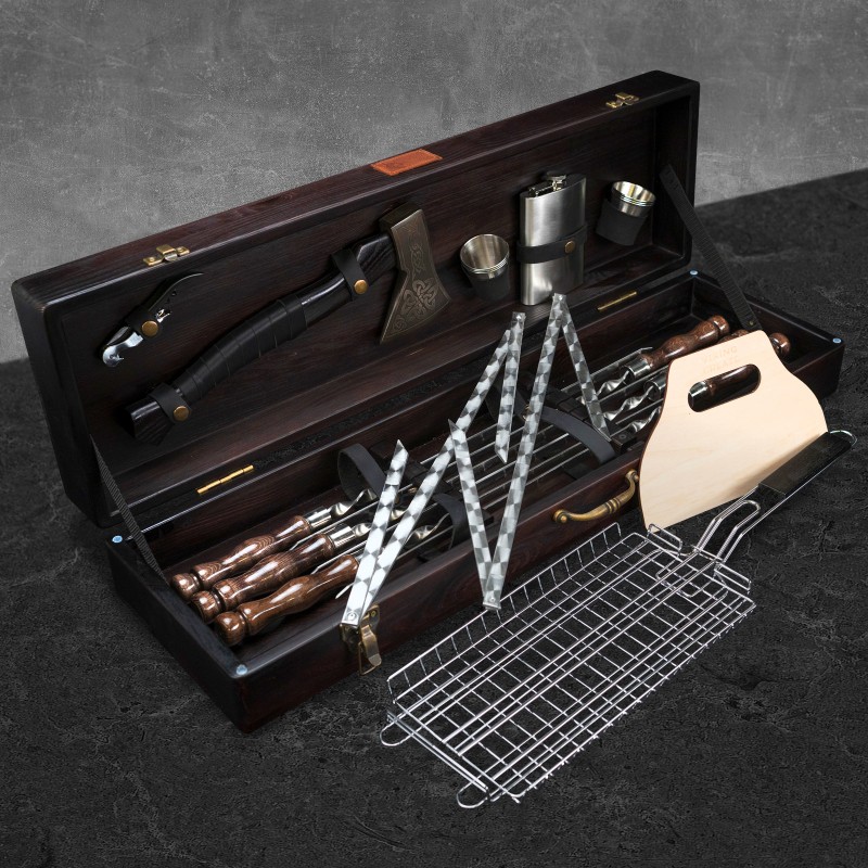 Подарочный набор для мангала в деревянном кейсе Снотра, 19 предметов - WC-010