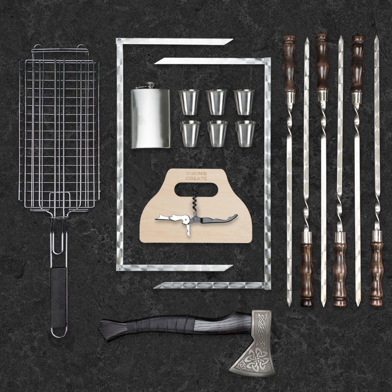 Он включает 19 предметов, позволяющих легко организовать барбекю, независимо от условий.