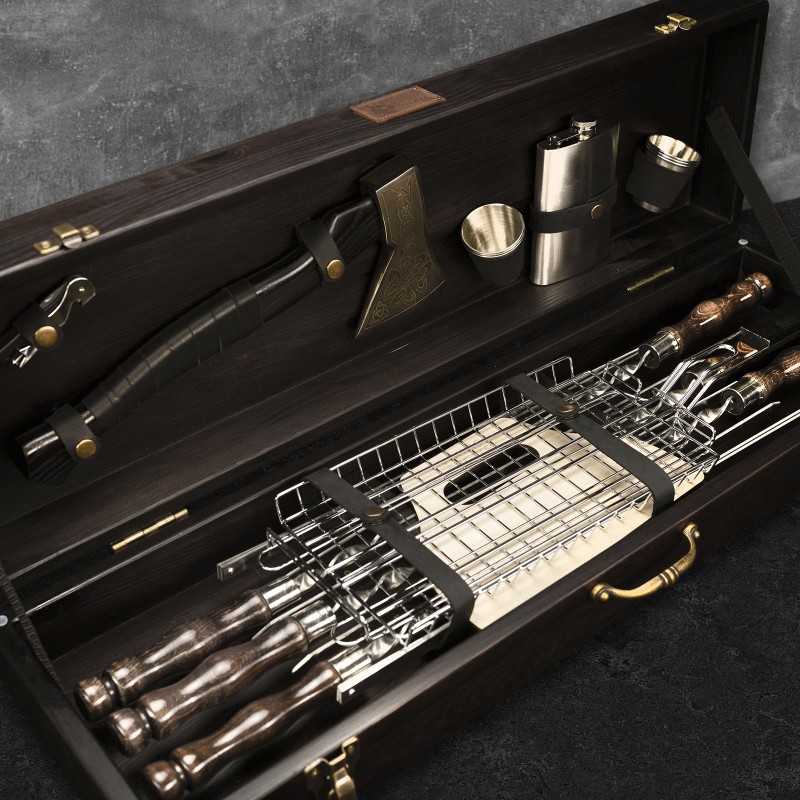 В наборе вы найдете все необходимое для приготовления любимых блюд на гриле, включая шампуры, щипцы, лопатку, щетку для масла и многое другое. Дизайн: - Эргономичный и стильный: Каждый предмет изготовлен из высококачественных материалов, обеспечивающих долговечность и удобство в использовании. Стильный дизайн позволяет вам презентационно выглядеть на любом мероприятии. Легкость использования и транспортировки: идеально подходит для пикников, кемпинга или семейных собраний. Все в одном наборе: больше не нужно покупать инструменты по отдельности! Высокое качество изготовления обеспечивает длительную эксплуатацию. Состав набора: