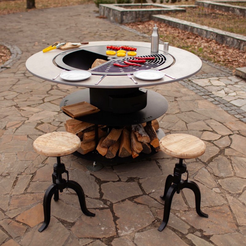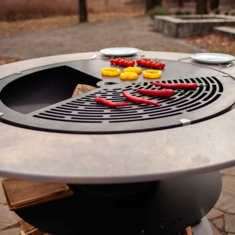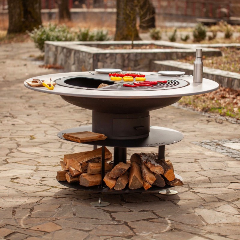 - «кольцевой» - этот теппан косвенного нагрева удобен тем, что нет необходимости ждать перегорания дров до угля, на нем можно готовить во время их активного горения. Также кольцевой тэппан может комплектоваться огневой надставкой.