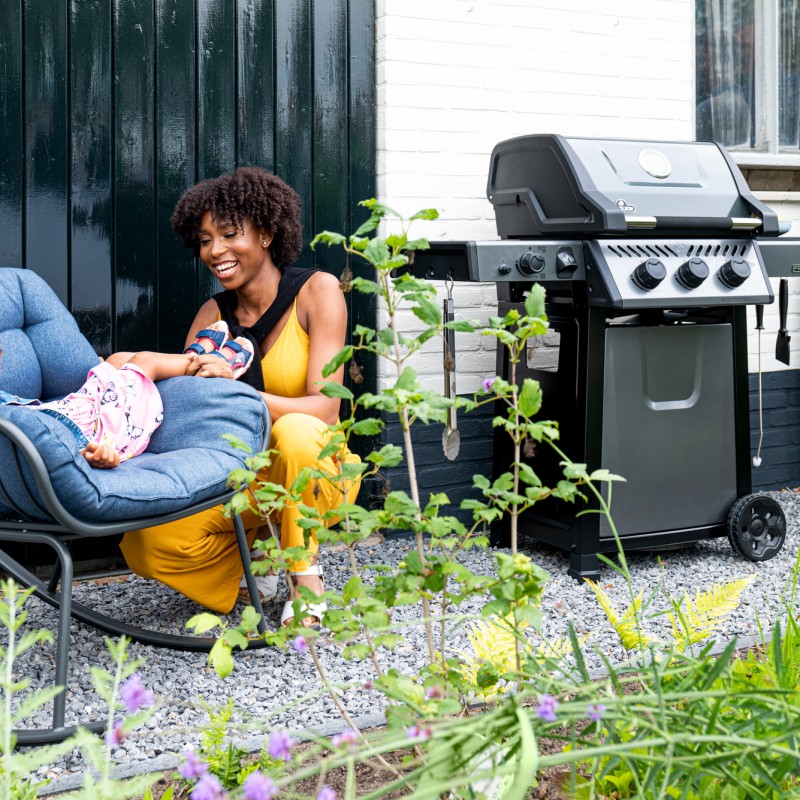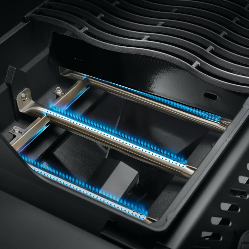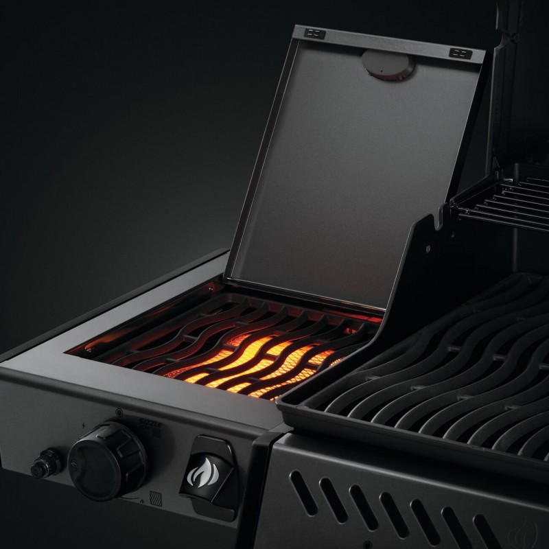 Устройство имеет 4 конфорки: 3 из них — основные, а одна, боковая, — инфракрасная. Это Sizzle Zone — высокотемпературное пространство слева, раскаляющееся до 800 градусов Цельсия. Выбрав гриль «Наполеон» для дачи в этой зоне можно готовить на сковороде или воке, например, мясные или овощные блюда. Они будут насыщены непревзойдённым ароматом.