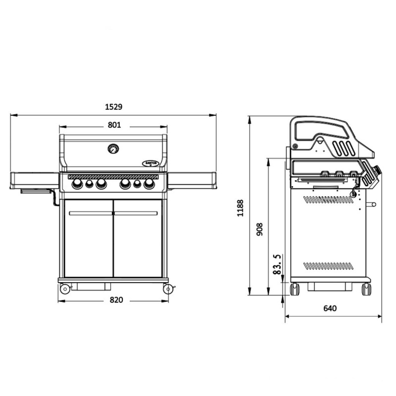 Газовый гриль SANTOS S-418 All Black, с боковой и задней горелкой, черный - 900297