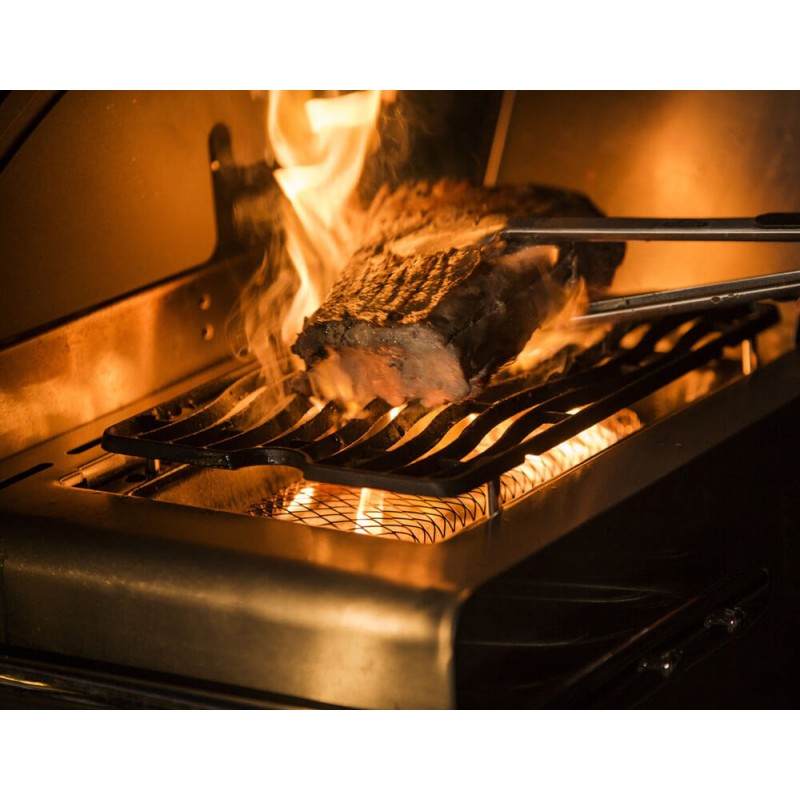 Создайте индивидуальные зоны нагрева жарочной решетки и готовьте разнообразные продукты одновременно. С опытом Вы будете использовать данный метод очень часто. Контроль температуры осуществляется за счет встроенного термометра в верхнюю крышку гриля. Боковая горелка предназначена для приготовления соусов к основному блюду, первых блюд и прочих сопутствующих продуктов. На гриле Вы приготовите любые барбекю продукты и даже сможете сделать выпечку и произвести копчение. Богатый функционал гриля с отменным качеством материалов будет долгие годы стабильно работать Вас барбекю блюдами.