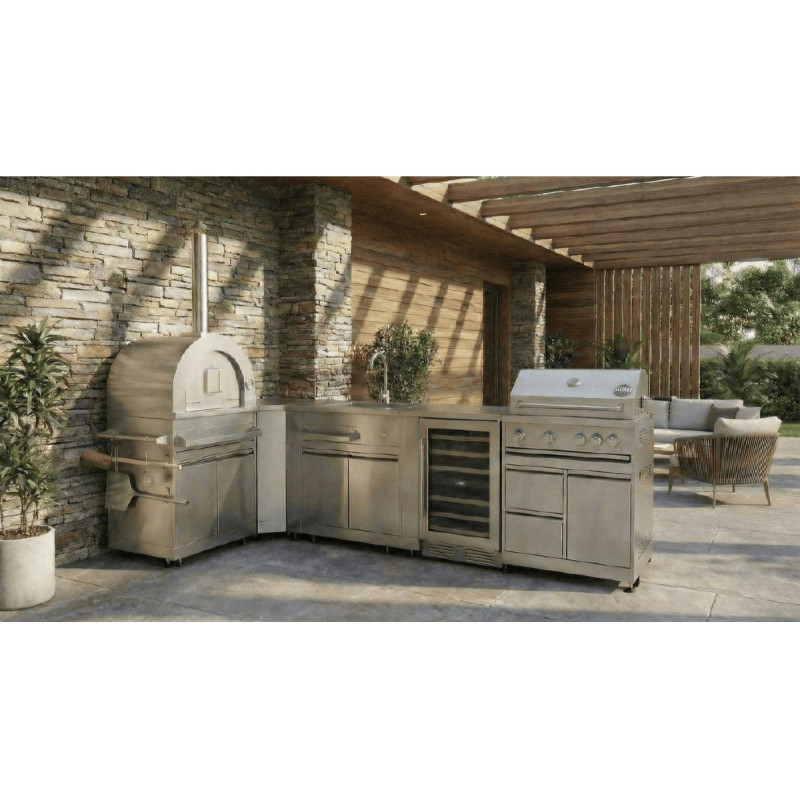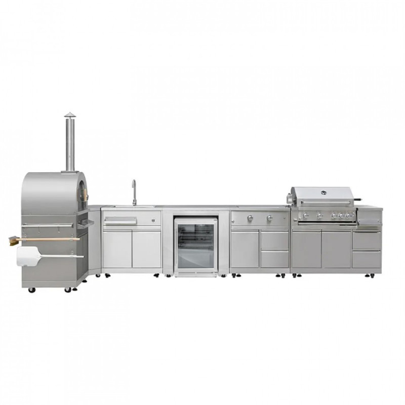 Уличная кухня с газовым грилем Kapitan, газовой пицца-печью, мойкой, холодильником, встроенной конфоркой GRILLI - 777603