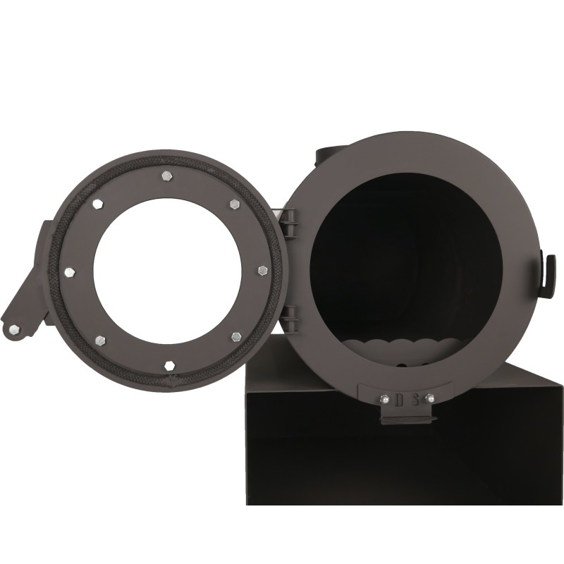 В дверцу встроено жаростойкое стекло, которое позволяет наблюдать за процессом горения холодными, зимними вечерами. Керамический шнур, проклеенный по периметру двери, обеспечивает герметичное закрывание печи.