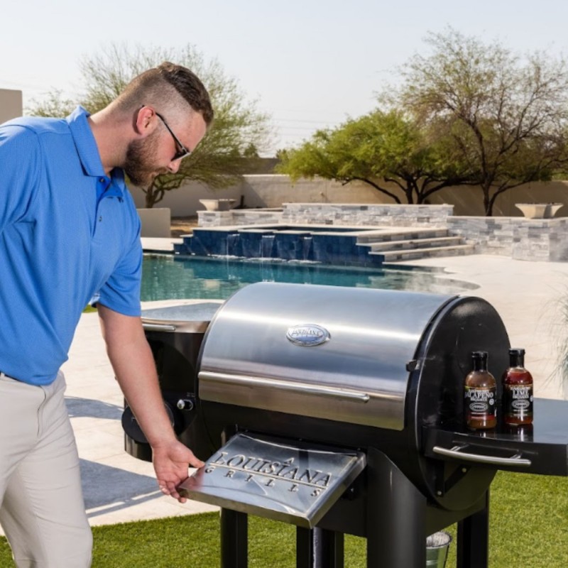 Изготовленный из прочной конструкции из нержавеющей стали маркировки 304, модель Legacy 800 имеет более чем полуметровое основание в диаметре со стальной крышкой с двойным покрытием, которая удовлетворит любую работу при любой температуре и справится с любой кулинарной прихотью, независимо от размера . Эти агрегаты также оснащены емкостью для гранул со смотровым окошком объемом почти 13 кг, складными передними и боковыми полками из нержавеющей стали со встроенными крючками для инструментов и полотенцесушителем.