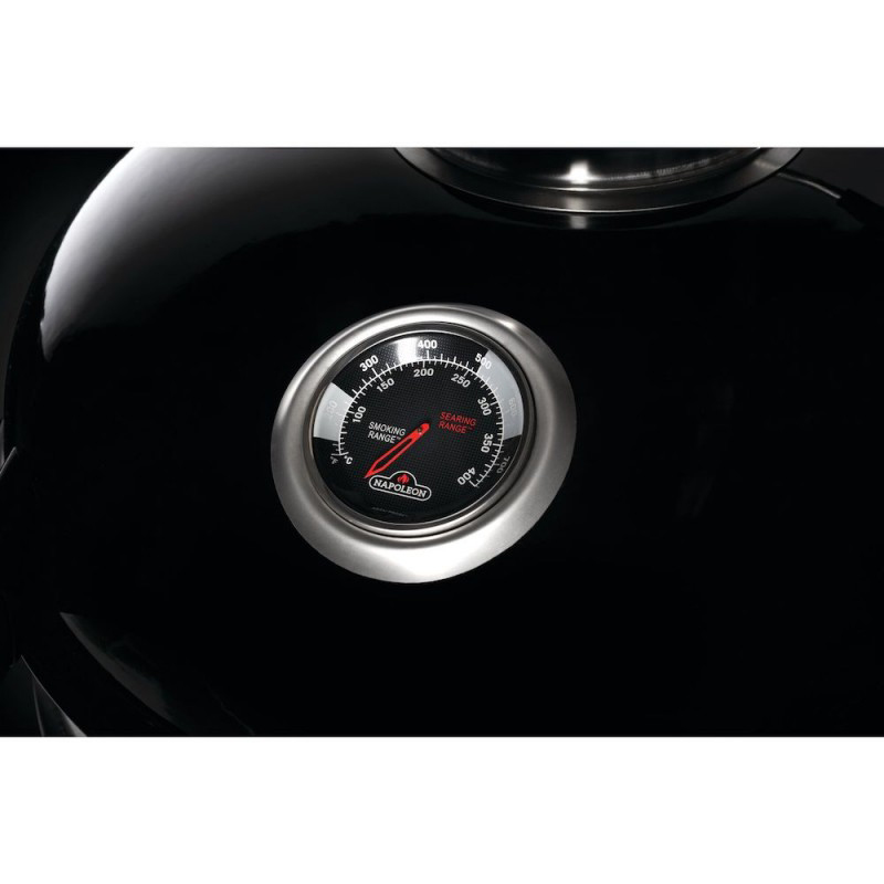 Принцип работы гриля Napoleon Professional 57 см. Угольный гриль Наполеон в качестве топлива использует треску или древесный уголь, размещаемый в специальном отсеке. Через вентиляционные отверстия воздух поступает в угольный барбекю, поддерживая горение угля и создавая необходимые условия для приготовления пищи. Встроенный термометр на крышке позволяет следить за температурой, помогая добиваться идеальных кулинарных результатов.