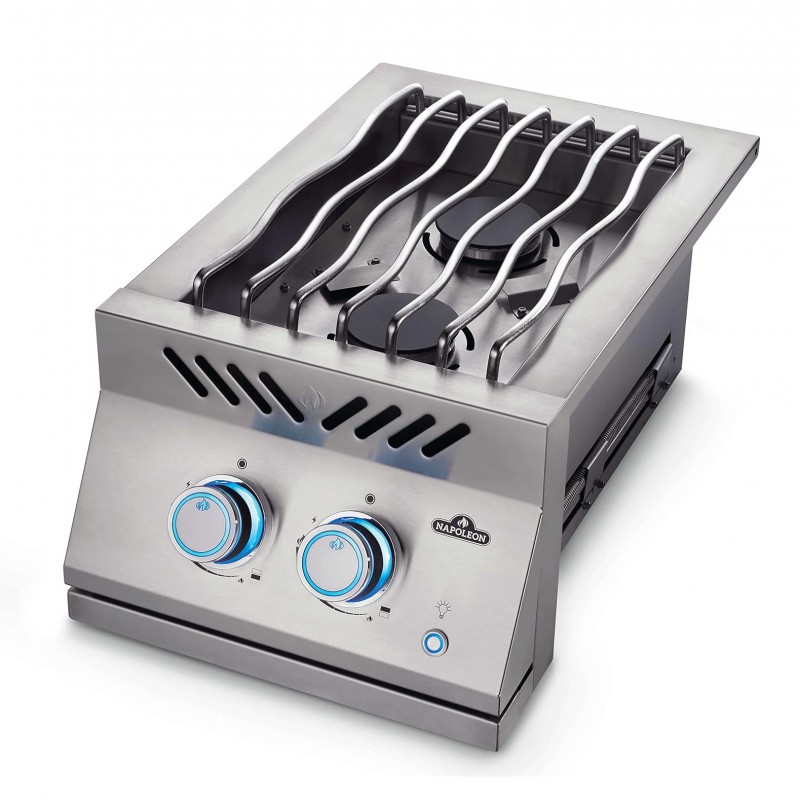 Двойная конфорка Napoleon 700 для встраивания с освещением регуляторов и крышкой нержавеющей стали - BIB12RTPSS