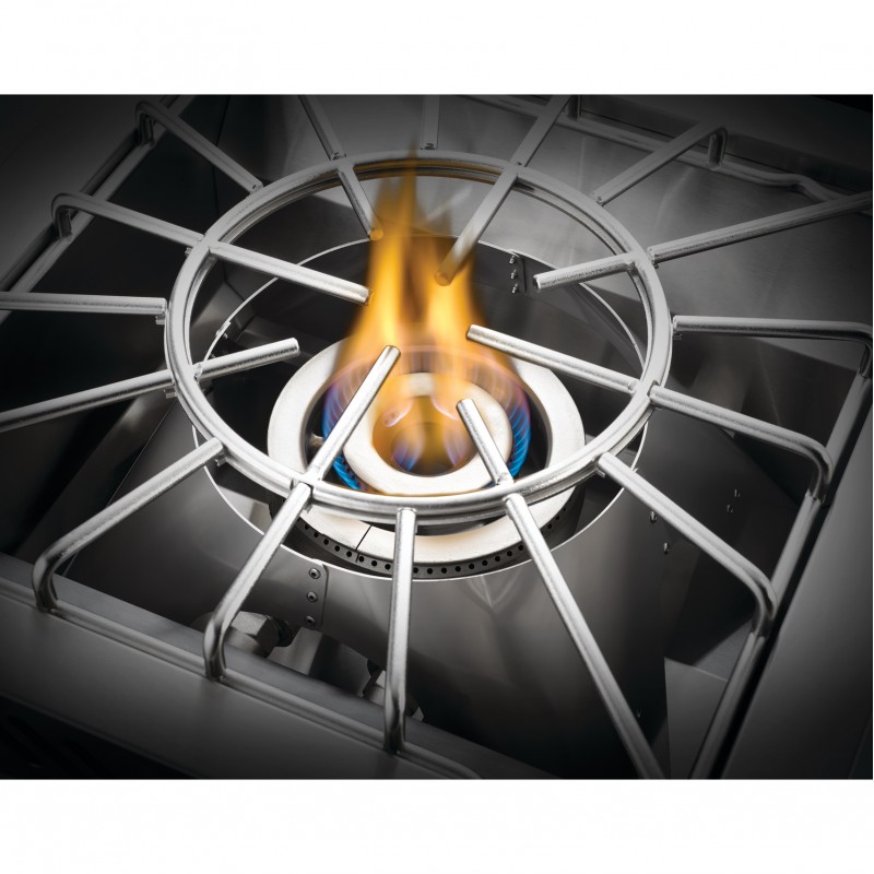 Мощная конфорка для вока может быть установлена только из достаточно термостойкого и негорючего материала. С другой стороны, установка в теплочувствительных строительных материалах также возможна с точно подогнанной монтажной рамой Наполеона. Это опционально доступно. Если встроенная конфорка для вока не установлена рядом со встроенным грилем Napoleon 700, для питания поворотного регулятора требуется дополнительный блок питания.