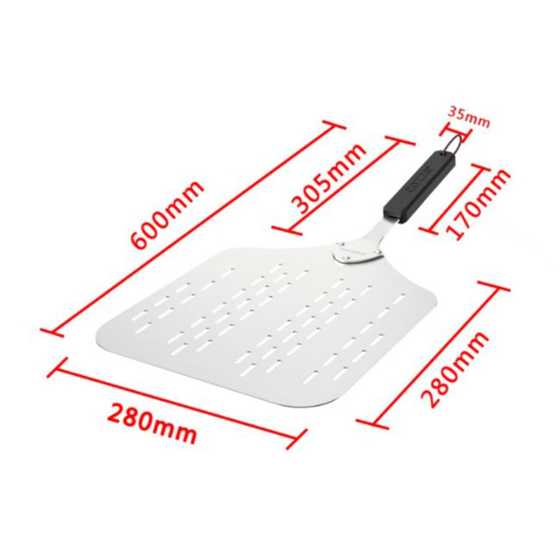 Конструкция с отверстиями позволяет лишней муке осыпаться до помещения пиццы в печь. Это предотвращает подгорание муки, уменьшает образование дыма и облегчает очистку печи. Дополнительно это способствует формированию идеально хрустящего дна.