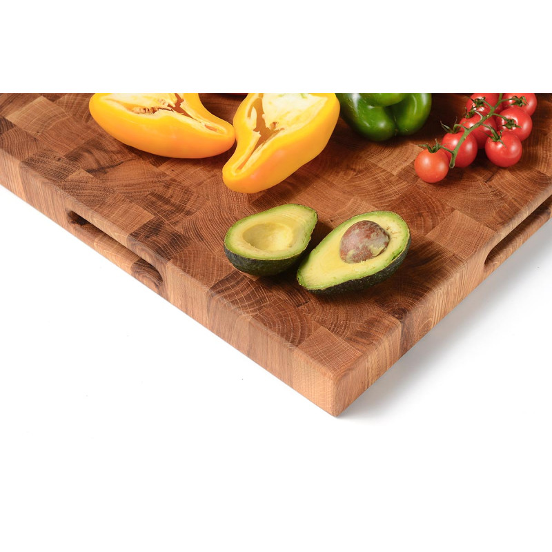 Дубовая доска отличается естественной прочностью и длительным сроком службы. Она сохраняет остроту ножей, выглядит стильно и придает солидности любому кухонному пространству. Идеальный выбор для поваров, которые ценят качество и надежность.