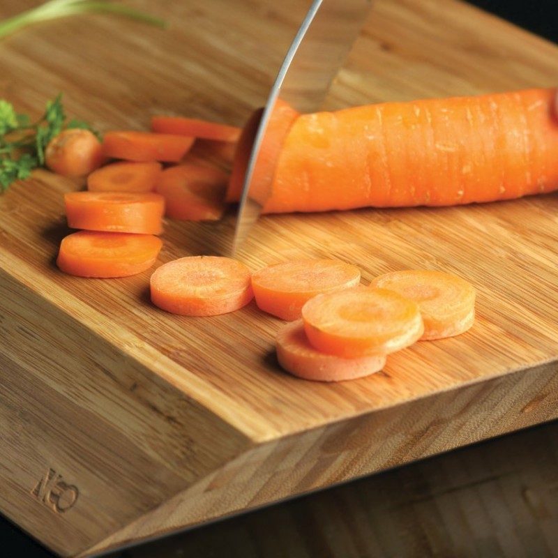 Продуманный дизайн с коническими краями позволяет без каких-либо сложностей переместить нарезанные ингредиенты с доски