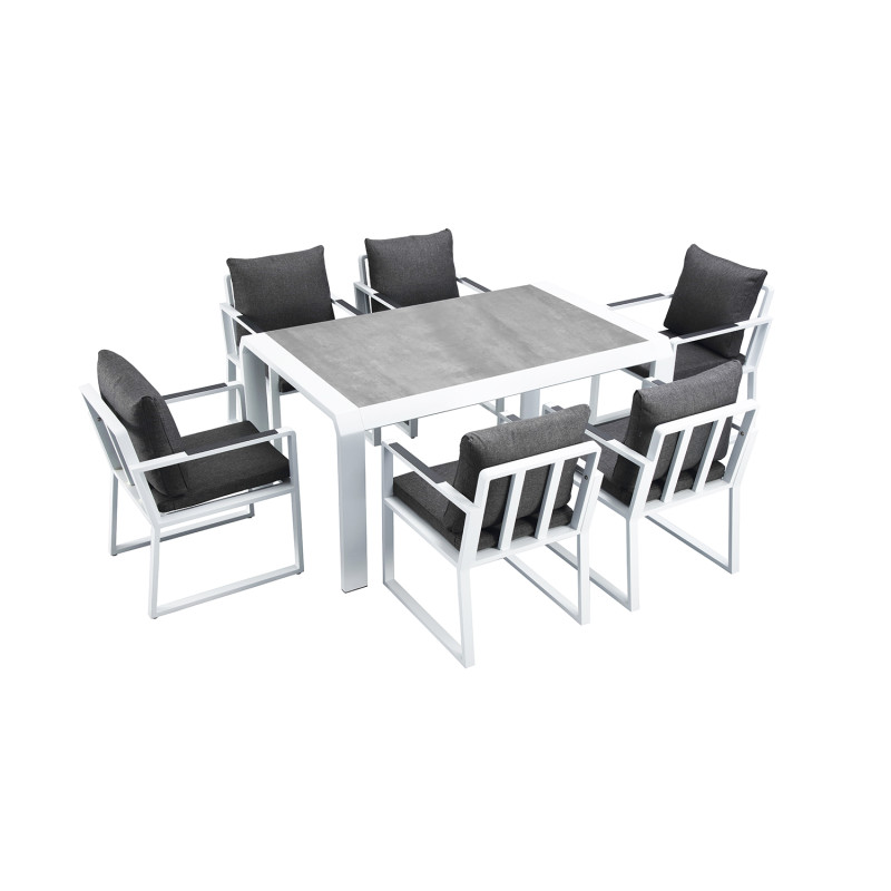 Обеденный комплект на 6 персон EXEE 3055150 легко монтируется и демонтируется, позволяя быстро изменять конфигурацию в соответствии с вашими потребностями. Этот комплект сочетает в себе прочность, комфорт и эстетичный вид, создавая идеальные условия для приятного времяпрепровождения на открытом воздухе.