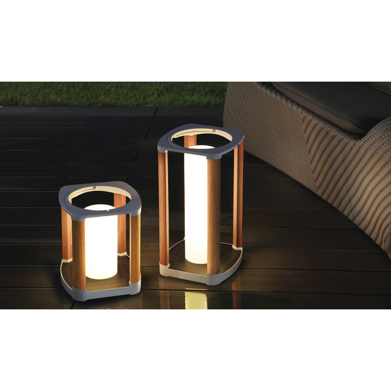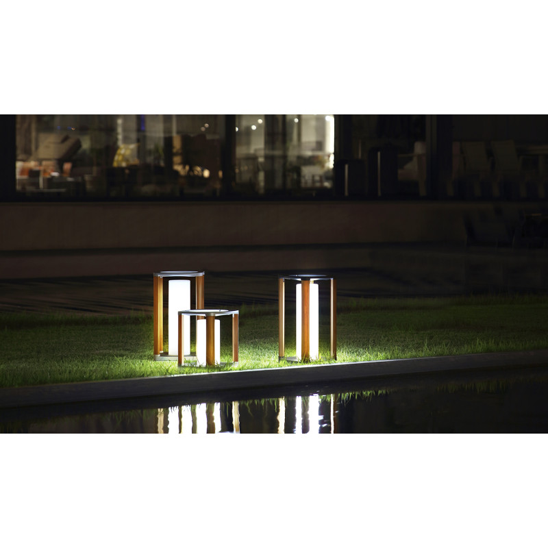 Универсальность: Лампа может заряжаться как от солнечного света, так и от электросети. Это позволяет не беспокоиться о зарядке в пасмурную погоду — просто подключите блок питания, и лампа полностью зарядится за 2 часа. "имитация тикового дерева" (стойки)
