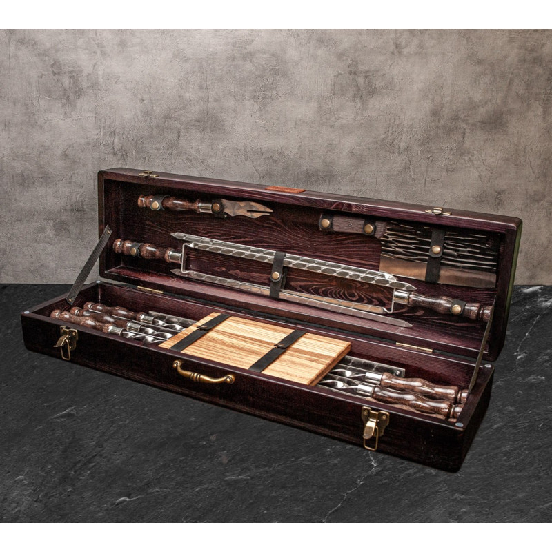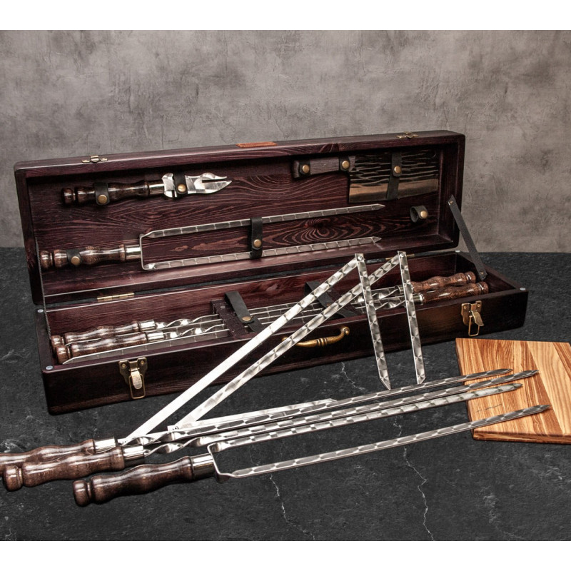 Елегантний дизайн: дерев'яний кейс надає набору естетичного вигляду, що робить його не лише практичним, а й стильним доповненням до вашого арсеналу для барбекю.