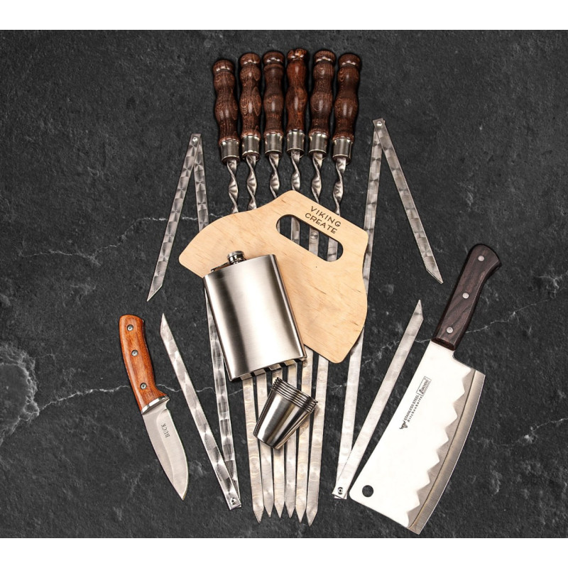 Універсальність: Підходить для різних типів приготування їжі, будь то гриль, шашлик чи барбекю. Стильний дизайн: Сучасний і естетично привабливий вигляд робить набір чудовим подарунком для цінителів активного відпочинку.