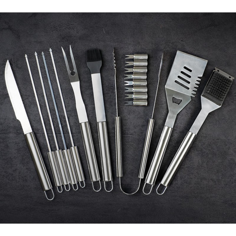 Комплексність:Набір містить усі необхідні інструменти для барбекю, що дозволяє уникнути додаткових покупок та спрощує процес приготування. Висока якість:Використання міцних матеріалів забезпечує тривалість служби комплекту, стійкість до корозії та збереження зовнішнього вигляду. Елегантний дизайн:Дерев'яний кейс робить набір стильним доповненням до будь-якого пікніка чи домашнього барбекю, що підкреслює ваш хороший смак. Зручність транспортування:Легкий кейс дозволяє зручно переносити набір, що робить його ідеальним для виїздів на природу або подорожей. Чудовий подарунок:Набір "Бальдар" стане відмінним подарунком для ваших родичів та друзів, які люблять готувати на вогні та проводити час на свіжому повітрі.