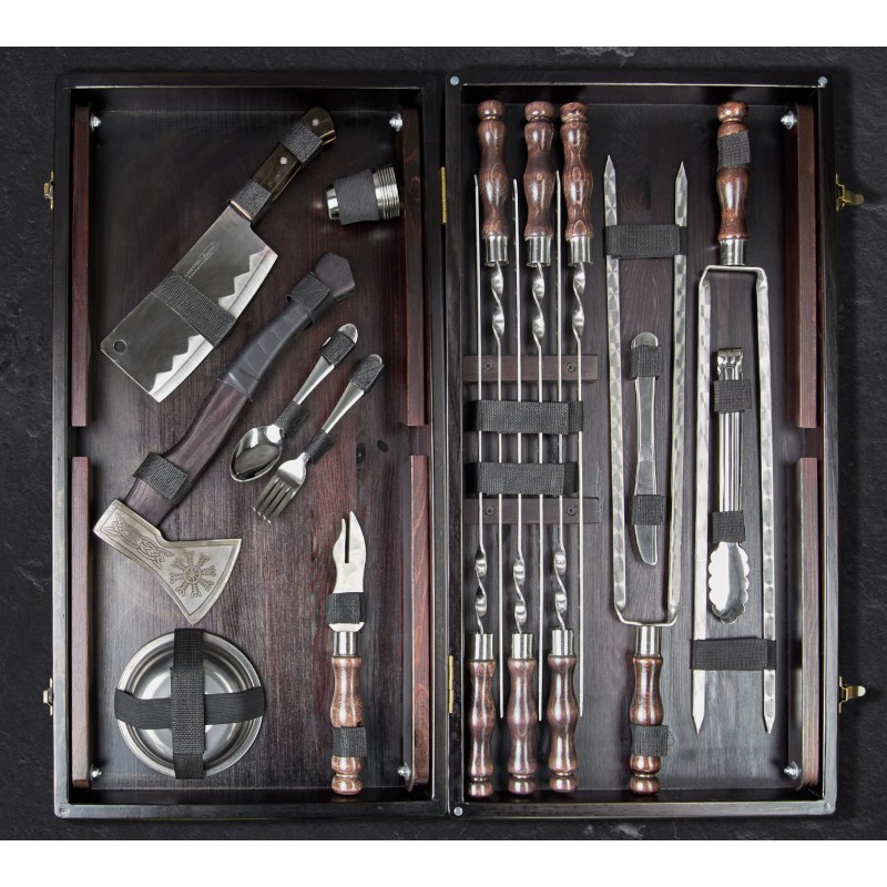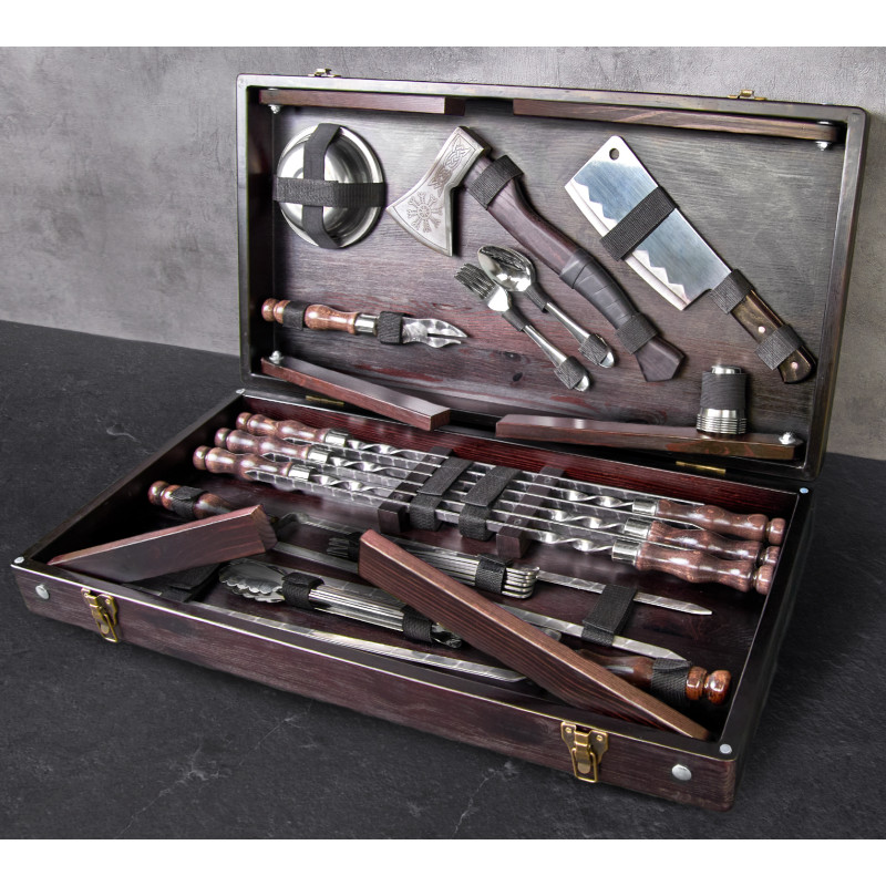 Подарунковий набір для мангалу в дерев'яному кейсі Деллінг, 42 предмети - WC-002