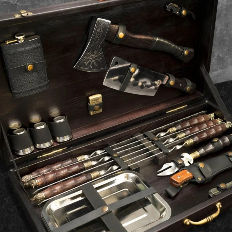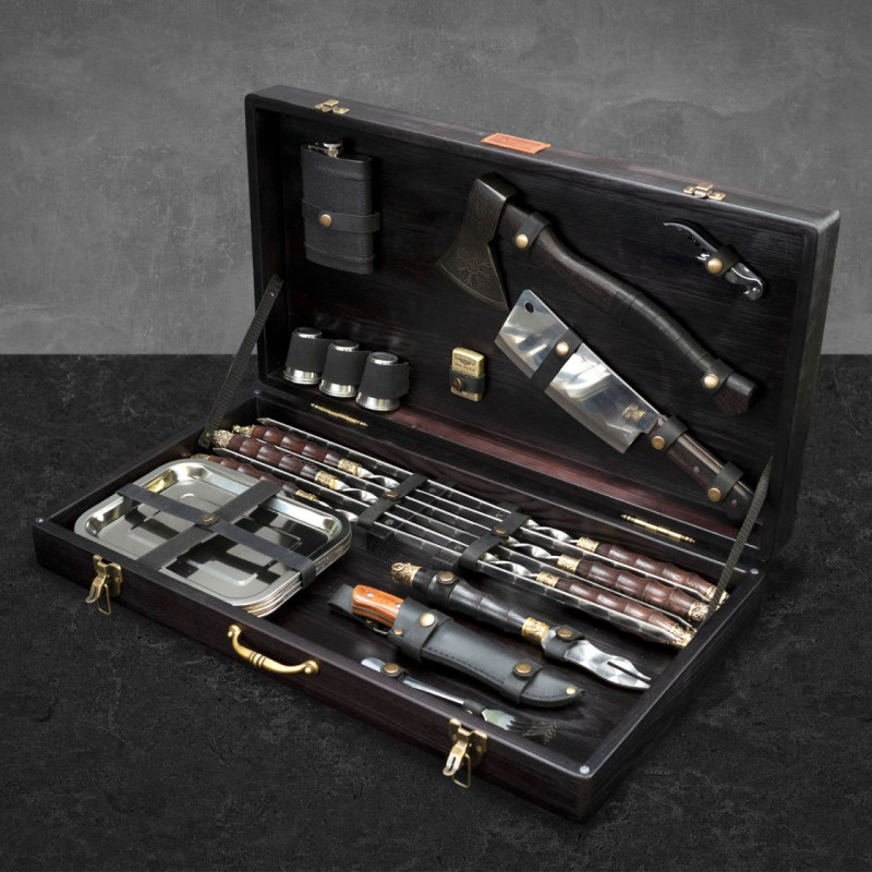 Подарунковий набір для мангалу в дерев'яному кейсі Йотун, 31 предмет - WC-005