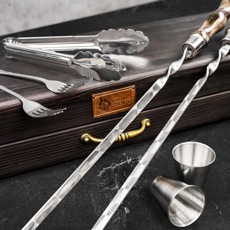 Маючи в своєму складі 25 предметів, він забезпечує все необхідне для приготування ідеальних гриль-страв, підходячи як для домашніх зустрічей, так і виїздів на природу. Обираючи набір шампурів "Скейд" для того, щоб зробити кожну зустріч з близькими незабутньою, а приготування страв на вогні — зручним та стильним!