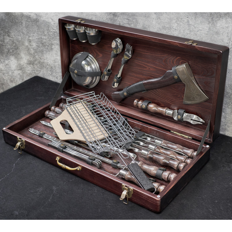 Подарунковий набір для мангалу в дерев'яному кейсі Тор, 43 предметів - WC-008