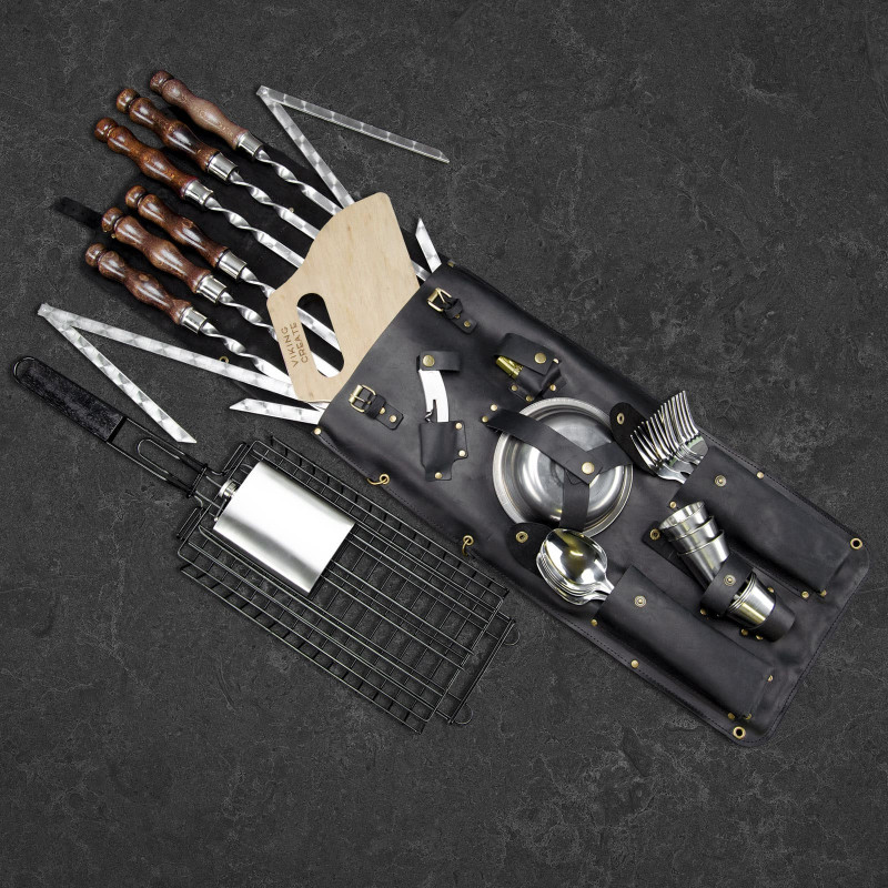 Набір шампурів "Мандрівник" в шкіряному кейсі 35 предметів - LC-028