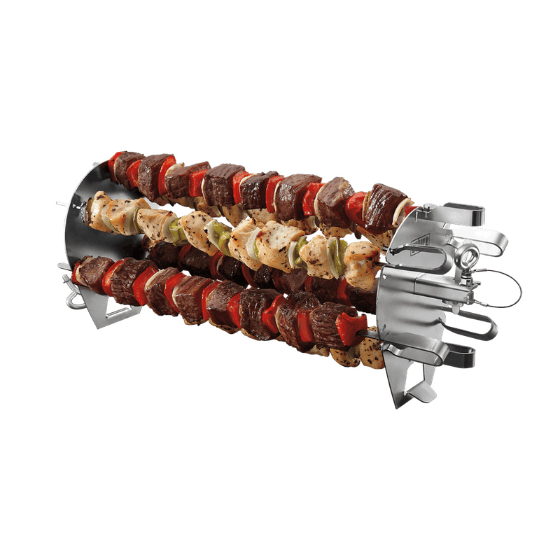 Приготування на грилі не повинно бути складним, шашлик посмажиться сам, поки ви відпочиваєте із близькими. Набір шампурів Weber CRADTED також відрізняється високою якістю. конструкція виготовлена із стійкої нержавіючої сталі. Його можна мити в посудомийній машині, контакт із водою не вплине на матеріал негативно. Додатковою перевагою є дуже проста збірка продукту, конструкція була розроблена, щоб ідеально відповідати вертелу бренду Weber. Аксесуари із серії Weber CRAFTED - це новинка, але набір шампурів для шашлику також можна використовувати в старіших моделях газових грилі та деякі вугільні грилі. Щоб мати можливість використовувати всі можливості набору, вам знадобиться тільки відповідний рожен, доступний від американського виробника.