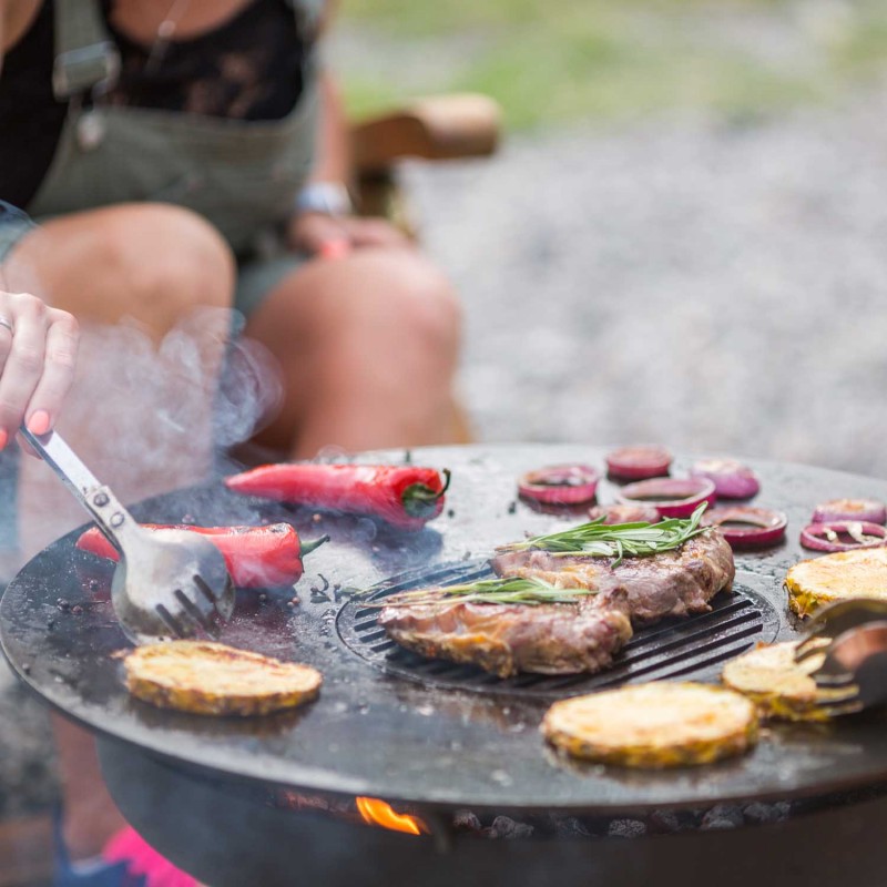 Їжа, приготовлена на гриль-мангалі на дровах Ahos UNO, буде не тільки надзвичайно смачною, а й корисною. Адже готувати можна навіть на краплі олії, а то й зовсім без неї. Гриль-мангал виготовлений з високотехнологічної сертифікованої сталі, саме тому небезпечні речовини не виділяються навіть при тривалій роботі. І навколишньому середовищу ви теж не нашкодите. При виробництві Ahos UNO використовували виключно екологічні матеріали. Гриль-мангал універсальний у використанні. Його можна встановити і на лісовому лужку, і в приміщенні. Прикрих слідів олії, сажі чи попелу довкола не залишиться. Вогонь горить рівномірно через продуману вентиляційну систему. А підставка виконує функцію уловлювача попелу. У вас з'явиться можливість насолоджуватися процесом приготування улюблених страв, і не згортати пікнік раніше часу. Ваші улюблені страви будуть готуватися при температурі 220-300 градусів Цельсія. Рівень розігріву жаровні регулюють інтенсивністю вогню у вогнищі. Подати на стіл буде можливість все, що душа забажає: від хрусткої картоплі до соковитого антрекота. На гарячій поверхні можна спекти навіть вишукану піцу на дровах. Особливості та комплектація гриль-мангалу на дровах Ahos UNO