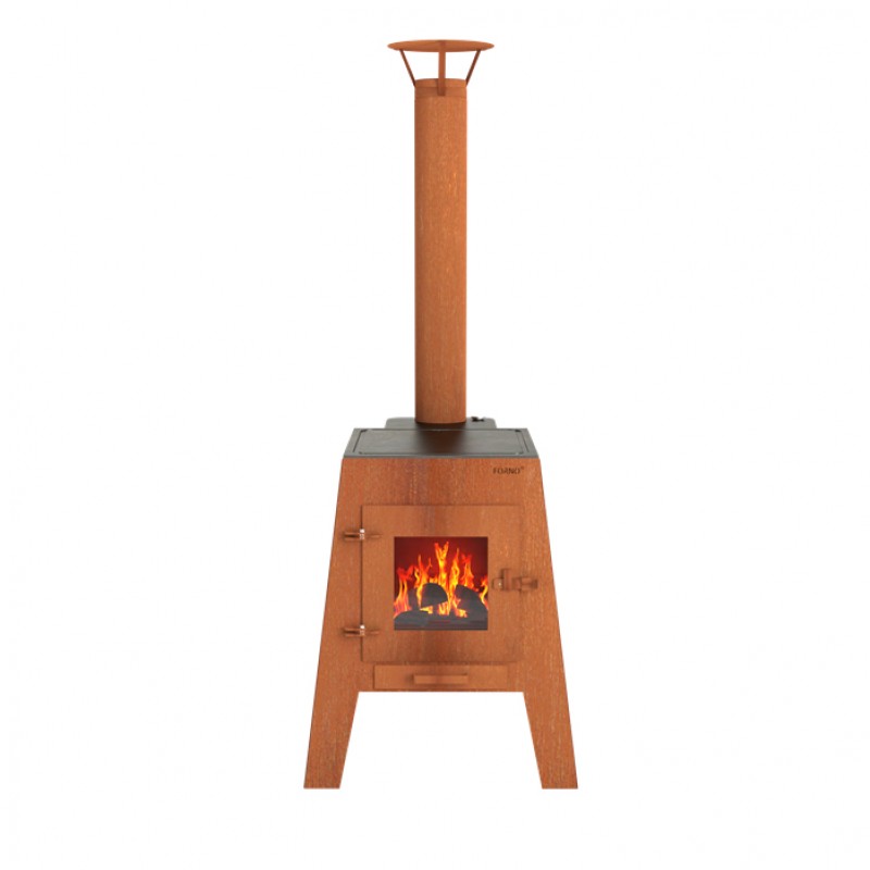 Камін DAMM зі сталі CorTen ефектно виглядає на тлі зелені. Його оригінальний та стильний дизайн підкреслить почуття смаку господаря ділянки.