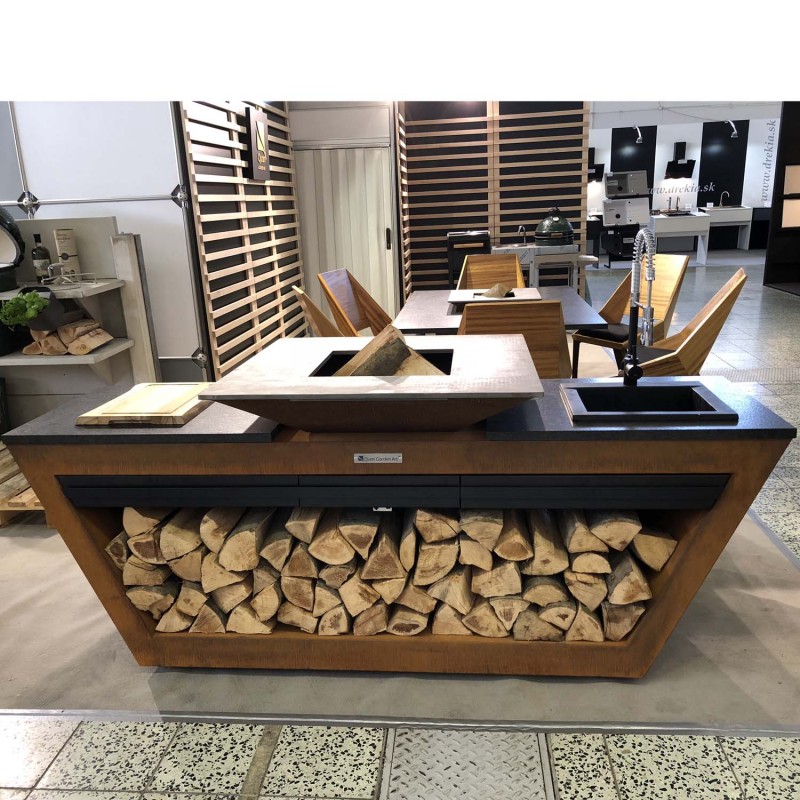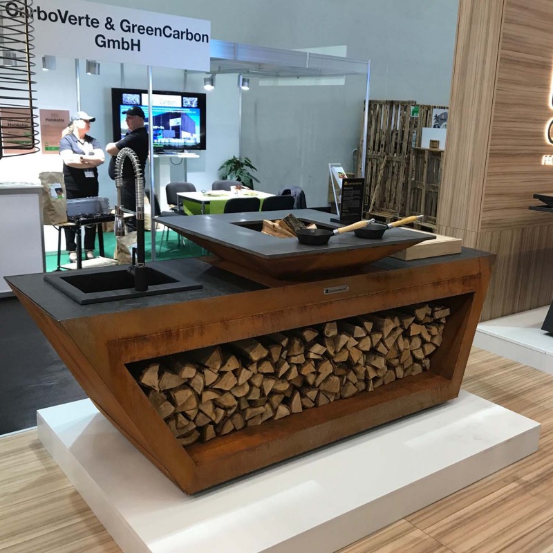 Міцна гранітна стільниця досить простора для приготування відразу кількох страв і сервірування. Велика ніша для зберігання дров для тривалого приготування. Незважаючи на значну вагу конструкції в 400 кг, її легко переміщати на вбудованих коліщатках.
