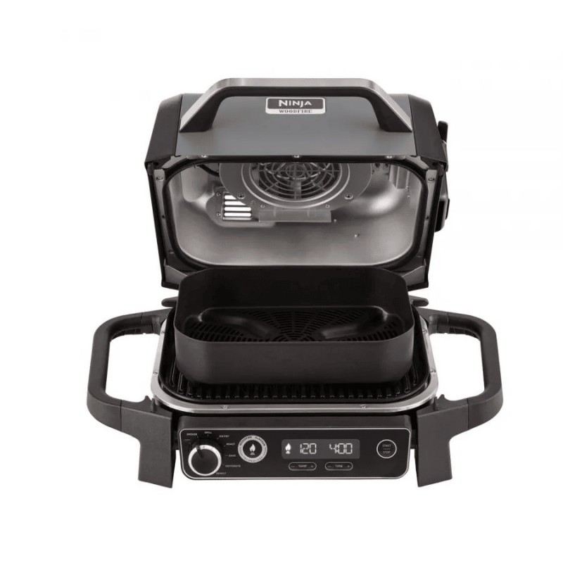 - Комплектація: 1 x Плоска ємність для гриля; 1 x Кошик для фритюру; 1x Знімна коптильна скринька; 1x Піддон для збирання жиру; 1 x Лопатка; 1x Основний блок; Пелети Ninja Woodfire.