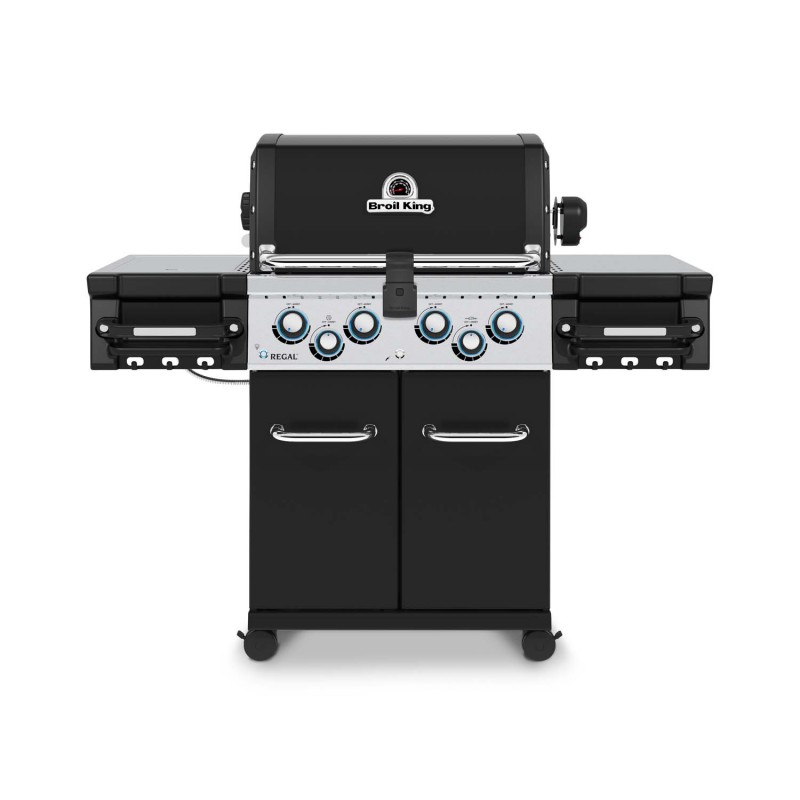 Щоб приготування їжі на грилі не займало надто багато часу, гриль Regal 490 від ТМ Broil King обладнаний чотирма газовими пальниками Dual-Tube™ із нержавіючої сталі з 10-річною гарантією із загальною потужністю 12,8 кВт. Для приготування будь-якої дичини в грилі є потужний електричний рожен.