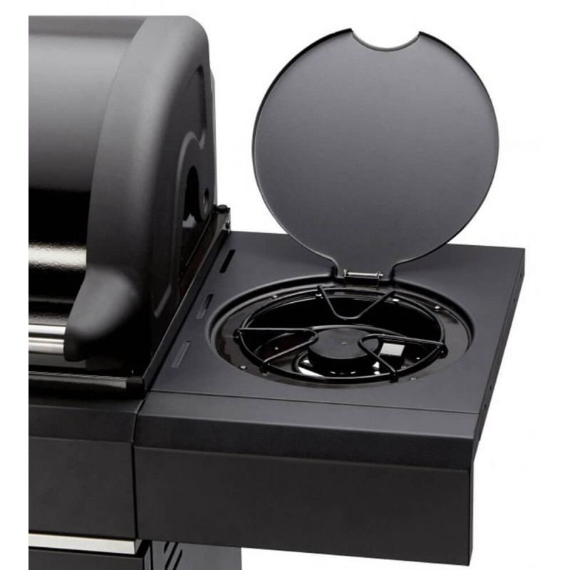 Гриль має три окремо регульовані зони нагріву (пальника) потужністю 3 х 3,7 кВт із системою рівномірного розподілу тепла HEAT RANGE®, додаткову бічну конфорку з кришкою (3,5 кВт), кришку з подвійними стінками та високоточним термометром, велику робочу поверхню для барбекю (60х45см), збільшені бічні поверхні та колеса для зручного переміщення. Завдяки запатентованій системі розумного очищення Simple Clean Ви зможете легко та швидко вимити використані компоненти гриля, як вручну, так і в посудомийній машині.