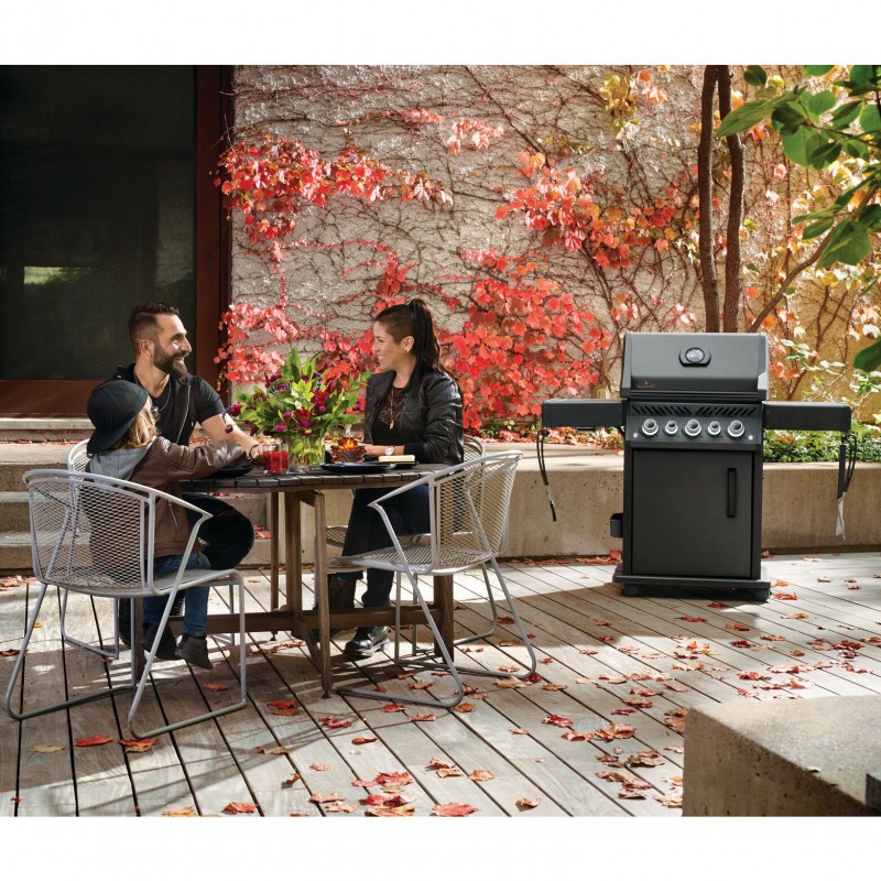 Точний термометр ACCU PROBE від Наполеона вбудований у кришку та дуже надійно показує внутрішню температуру газового гриля. Під високою кришкою приготування розкішних страв на рожні не складе труднощів, навіть можна легко поставити жаровню під продукт.