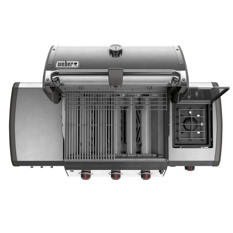 Для цих же цілей чавунні решітки мають більш вузькі стійки. Система High + Sear Station для повного контролю за температурою приготування та можливості індивідуального максимального положення пальника. Надійна електронна система запалювання. Система захисту пальників від жиру та додаткового джерела п'янкого аромату смаженого м'яса - Weber® Flavorizer® Bars збережені і в новій моделі грилів Genesis. решітки-гриль Gourmet BBQ System забезпечить додаткові можливості для гурманів - стейкові решітки, вок-казан і сковорода, а в правому столику гриля розташовується додаткова конфорка. У модернізованій серії Genesis II LX додаткові функції - вбудована система запалювання в кожній ручці на передній панелі та додаткове освітлення на ручці гриля, на випадок несподіваного нічного барбекю.