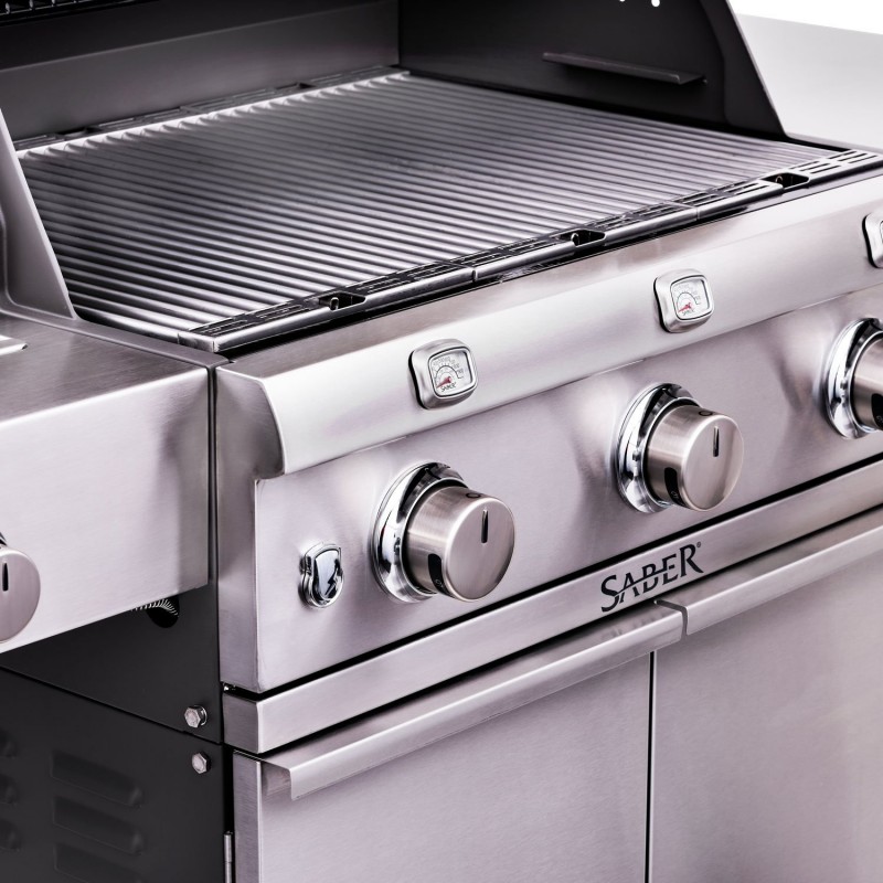 Виготовлений із високоякісної нержавіючої сталі AISI 304 та чавуну, гриль SABER спроектований, щоб витримувати довгі роки інтенсивної експлуатації. Більшість сполук цього надійного гриля є звареними, що забезпечує виняткову довговічність. Досвідчені користувачі оцінять незалежні зони приготування, створені кожним пальником, професійні термометри, електронне запалювання.