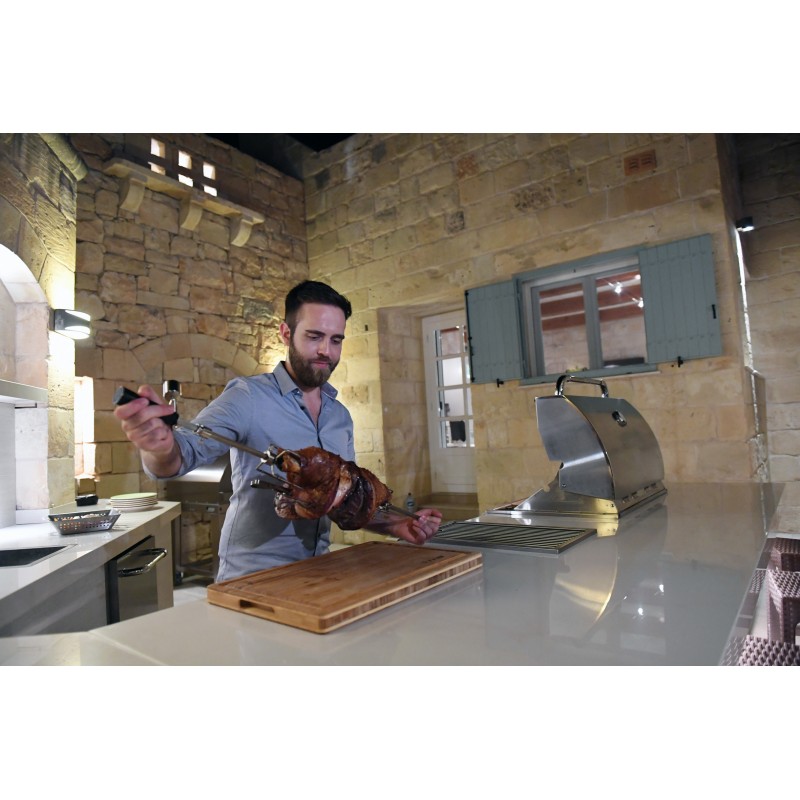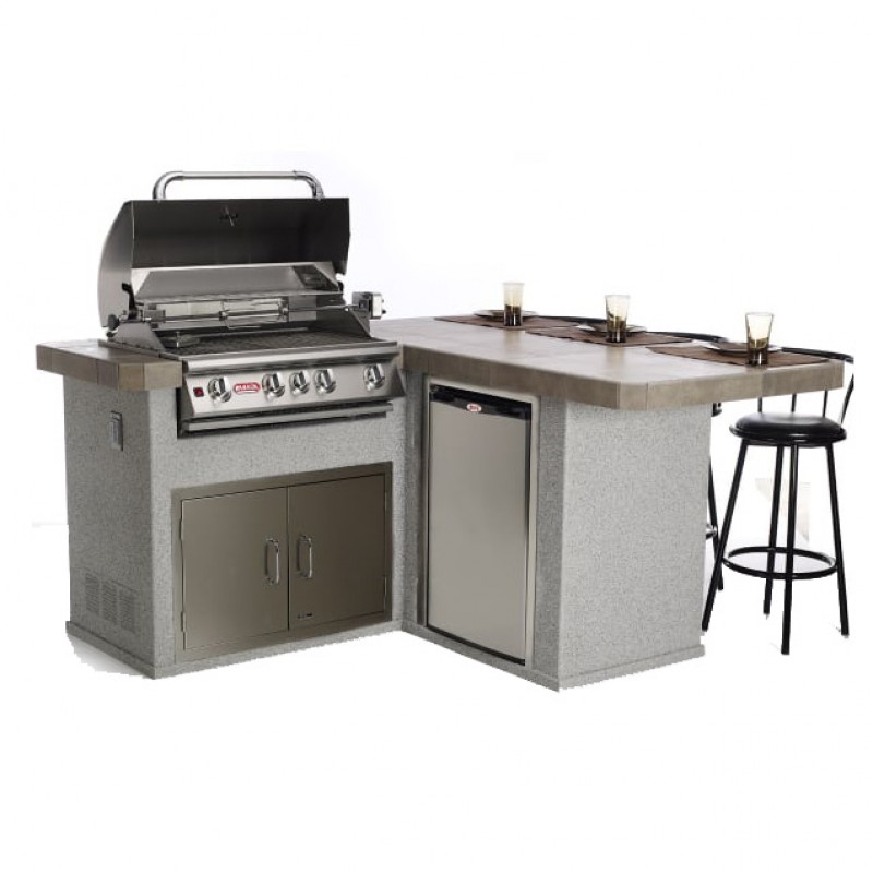 Комплектація Bull: нове слово кухонної техніки Гриль зона Bull приїжджають до вас додому вже готовими до роботи. Завдяки технології «plug-and-play» («приєднуй та працюй») ви відразу можете приступати до готування, насолоджуватися власними кулінарними творами та розважати друзів, сім'ю. Bull – це також величезний спектр доповнень. Починаючи з базових опцій, таких як вишуканий колір та дороге оздоблення, закінчуючи індивідуальним вибором плитки – ви можете бути впевнені в тому, що нова відкрита кухня вписується у ваш інтер'єр. Bull Little – Q – це не великий, але дуже компактний кухонний острівець з барною стійкою та холодильником. У стандартну комплектацію входить газовий гриль на чотири потужні пальники, з додатковим заднім інфрачервоним пальником для рожна. Місткий холодильник, дверцята з полицями всередині. Ви можете змінити базову комплектацію та додати нові комплектуючі.