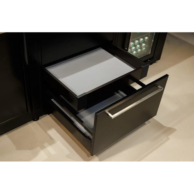 Він пропонує достатньо місця для зберігання газових балонів, а також для громіздких аксесуарів для барбекю або іншого обладнання. Існує також можливість легко та просто встановити холодильник (максимальний розмір: 598 (Ш) x 830 (В) x 560 (Г) мм, що надає вашій індивідуальній кухні барбекю ще більше переваг. Висота стільниці: від 930 до 995 мм - регулюється індивідуально. Розміри: 640 (Ш) x 611 (Г) мм - 2 Шухляднич модулі