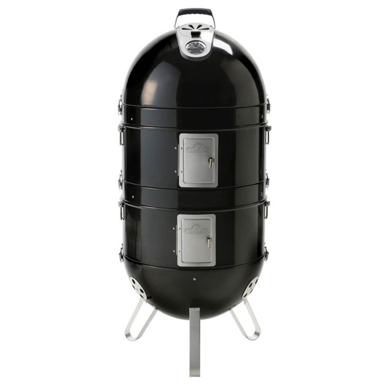 Такою, правильною, коптильною є Napoleon Apollo AS200K. Вона має дуже цікаву конструкцію, яка складається з двох рівнів. Ця коптильня може трансформуватися в однорівневу, якщо Вам не потрібна велика площа копчення. І в маленький портативний сферичний гриль, який дуже зручно брати із собою на виїзний пікнік, полювання, риболовлю. Цей малюк дуже місткий: у ньому можна зробити за раз 12 ситних бургерів! Візьміть його в дорогу, і він смачно нагодує Вас на першу ж вимогу. У всіх трьох іпостасях Napoleon Apollo розігрівається швидко і довго тримає жар. У грилі-коптильні Napoleon Apollo AS200K дві решітки діаметром 41 см: на одній можна коптити три великі «стрічки» ребер, на другій – великий шматок свинини. А можна прибрати решітки та підвісити за 5 гачків великі свіжі риби. Або ковбаски і ті ж реберця.
