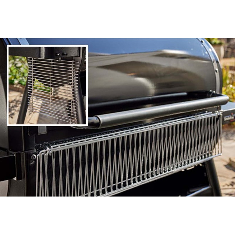 • Решітка Gourmet BBQ System (GBS) перетворює SmokeFire на багатофункціональний гриль із широким набором аксесуарів GBS, таких як камінь для піци, решітка для обсмажування, голландська піч тощо.