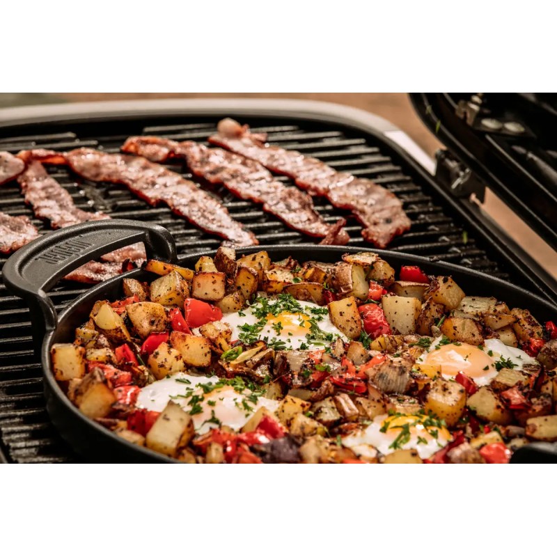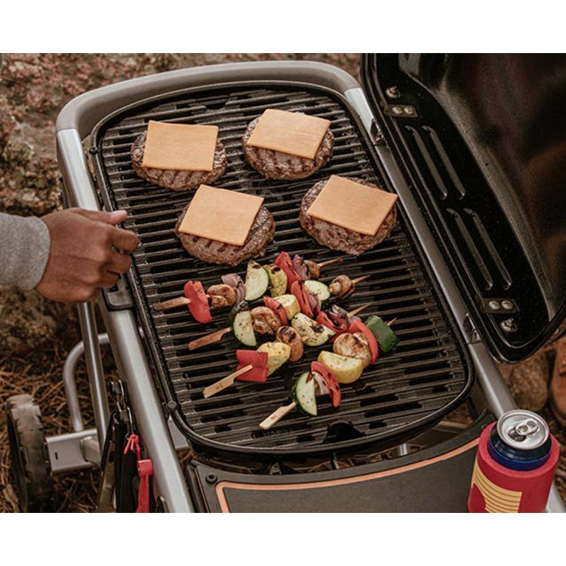 - Велика зона приготування, розміром 2065 см², дозволяє готувати до 15 бургерів або декілька інших страв одночасно, що робить гриль неймовірно функціональним. Виїзжайте на природу та готуйте різноманітні страви на велику компанію сім'ї та друзів.