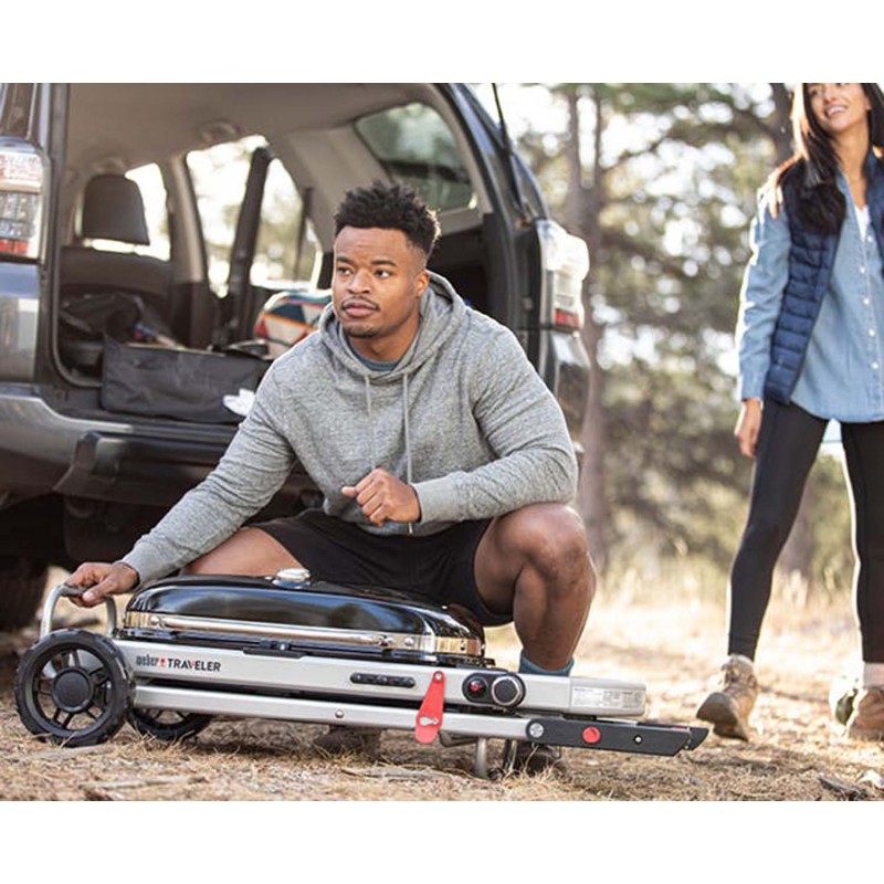 - Широкий діапазон температур у поєднанні з термоментром на кришці грилю дозволяє готувати будь-які страви, від ніжних млинців до стейків. Weber Traveler з легкістю дозволить приготувати усе починаючи з смачного завтраку до пізньої вечері,