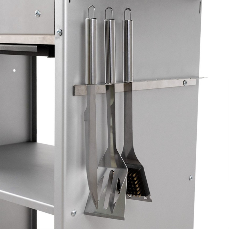 Опис Гриль-барбекю «Brooklyn» відрізняється чіткістю ліній та відмінним дизайном. Ці грилі продумані до найменшого гвинтика. Жаровня гриля має подвійну стінку, що забезпечує довшу та якіснішу віддачу температури, а ще захистить вас від опіків. Правильна форма кришки, шибер та отвори на дні забезпечують ефективну конвекцію повітря в жаровні. Одночасно можна готувати на шампурах та на решітці гриль. Під шампури є спеціальні місця, щоб зручно було закривати кришку при їх використанні. Гарячі решітки можна знімати з’ємниками, які йдуть в комплекті. Решітки гриль та з’ємники виготовлені з харчової нержавіючої сталі, що значно продовжить термін експлуатації та буде більш безпечним для вас. Особливість цієї лінійки це кількість простору, який можна використовувати. Бокові полиці можна встановлювати на 2 рівні. Шампури ви можете повісити на їх нижню частину. Дві нижні полиці дозволять розмістити решту необхідного під час приготування, а для лопаток, щипців та інших приборів збоку є планка-тримач. ЇЇ ви можете встановити на обох бокових стінках, так і на обох бокових поличках. Окремий плюс для шульги. Грилі покриті фарбою Thermodoor 600 ASS BBQ навіть від частого та тривалого використання зберігає гарний стан. З таким грилем ви точно отримаєте задоволення від процесу приготування. Решітка гриль виготовлена з харчової нержавіючої сталі, яка найбільш витривала до корозії та абсолютно безпечна для здоров’я людини.
