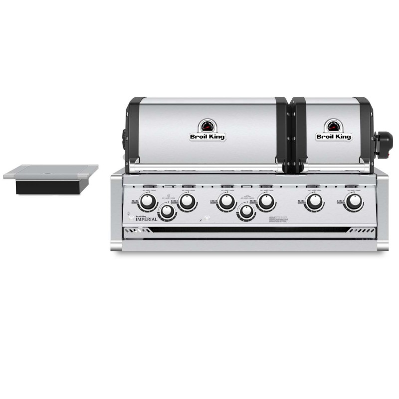 Вбудований газовий гриль ТМ Broil King IMPERIAL XL включає нержавіючу решітку, 6 пальників, потужний рожен, дві різні камери і бічну конфорку.