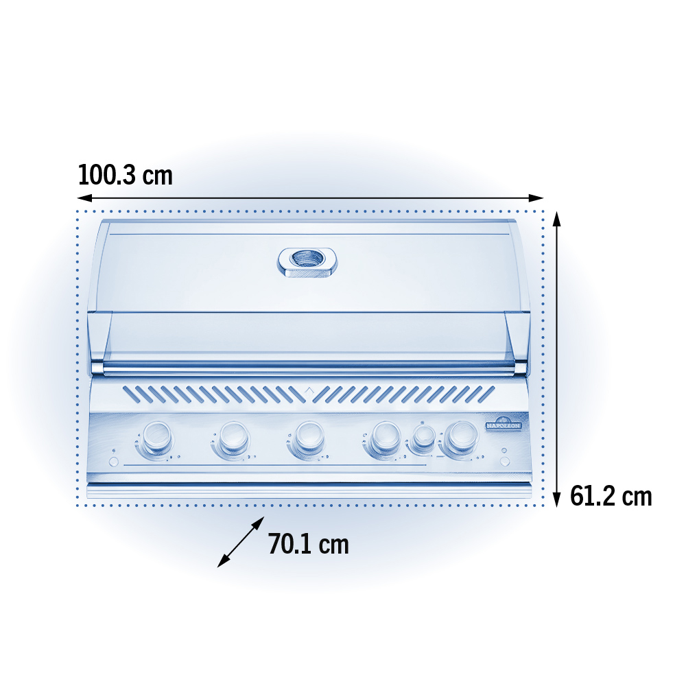 Вбудований гриль може бути встановлений лише в нішу з термостійких та негорючих матеріалів. З іншого боку, встановлення теплочутливих будівельних матеріалах також можливе з точно підігнаною монтажною рамою від Наполеона. Кожух BI-3623-ZCL доступний як опція. Особливості: