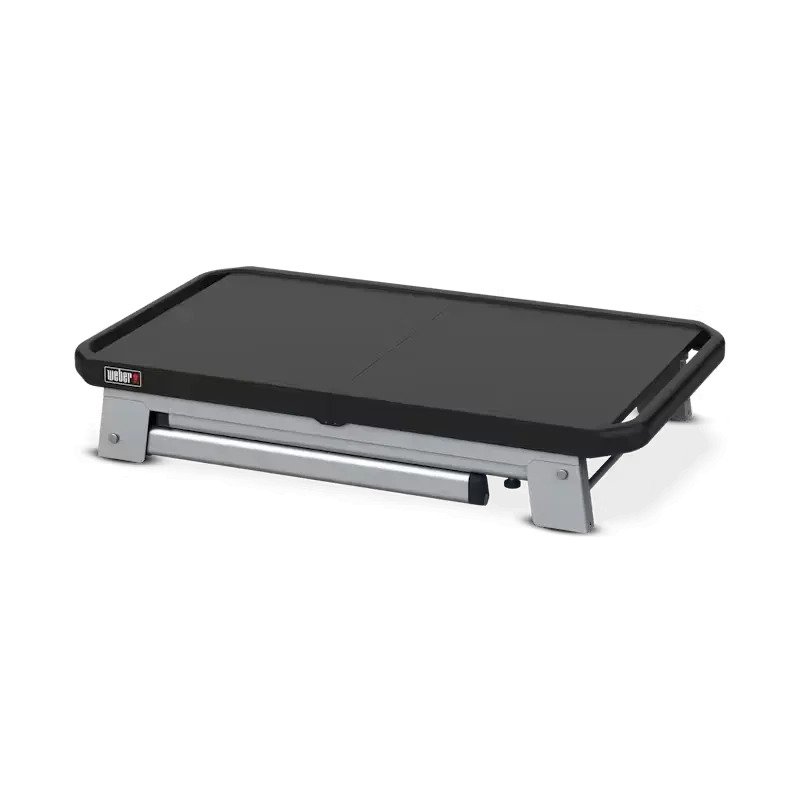 Бічні столики можна посунути один до одного, щоб заощадити простір, і використовувати як зручну сервірувальну поверхню. Стіл сумісний з моделями SLATE Premium Plancha 43 см і 56 см, Lumin Compact і Lumin, Pulse 1000 і 2000, Smokey Joe, Go-Anywhere та Q серії до моделі Q 2000. Ідеальний супутник для мобільного грилювання.
