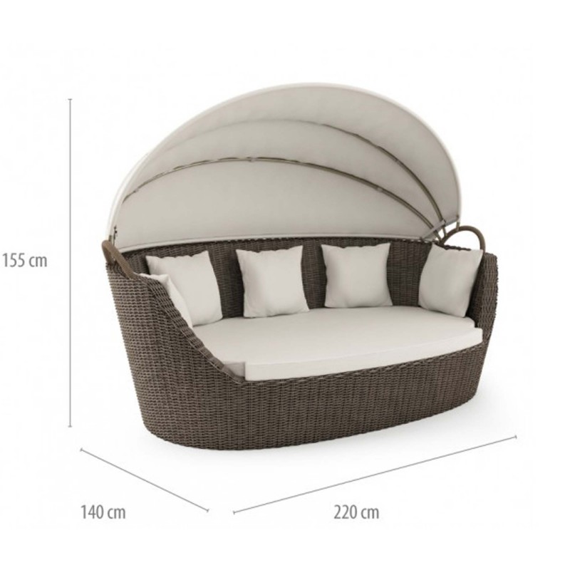 Диван можна використовувати як місце для сидіння, так і зручне ліжко для денного сну або романтичні вечори під зірками. Завдяки складному куполу PORTOFINO чудово захищає від сонця та вітру – просто протягніть руку, щоб сховатись у потрібній тіні або захистити від вітру. Диван PORTOFINO відмінно підійде не лише вдома. Завдяки своїм унікальним властивостям та унікальному зовнішньому вигляду, він ідеально підійде для готельних терас, відкритих басейнів, SPA-центрів, барів та пляжів.