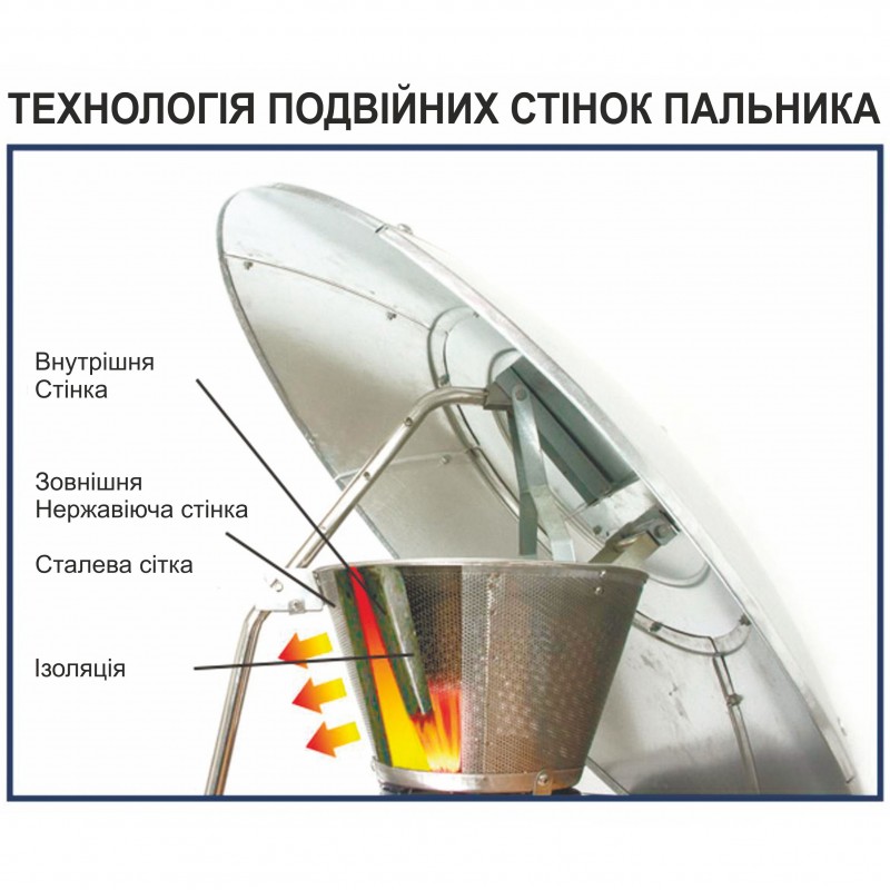 - - Подвійна стінка пальника для покращення тепловіддачі та підтримання довговічності обігрівача.